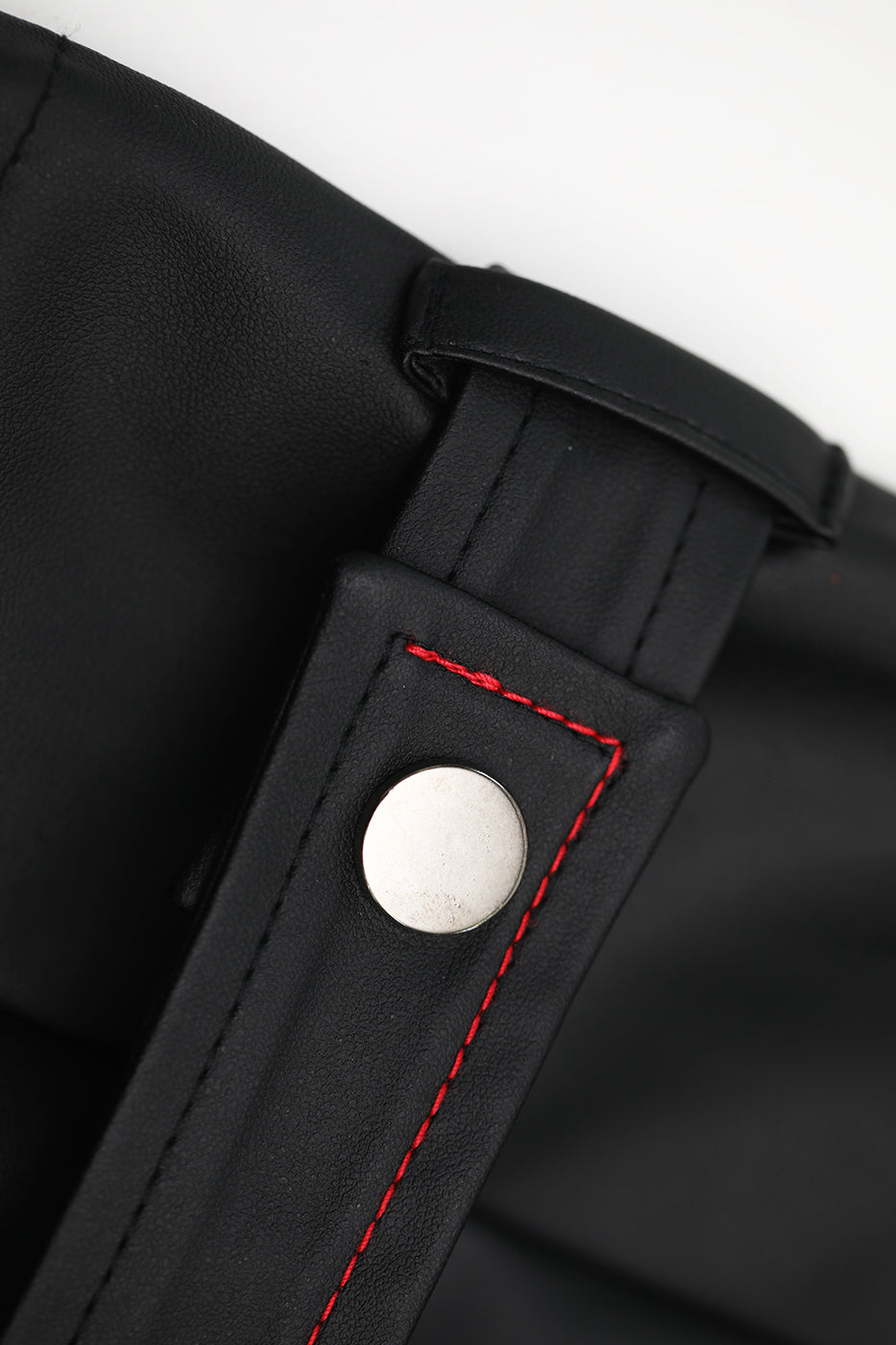 Dieser spektakuläre Herrenmantel von Regnes Fetish Planet verbindet klassische Trenchcoat-Eleganz mit moderner Fetish-Ästhetik. Gefertigt aus hochwertigem schwarzem Kunstleder, betont er durch seinen Slim-Fit-Schnitt die Silhouette – breite Schultern, schmale Taille. Raffinierte Details wie rote Nähte, der Alcantara-Patch, dekorative Druckknöpfe und Ärmelträger mit Nieten machen den Mantel zu einem einzigartigen Statement-Piece.
