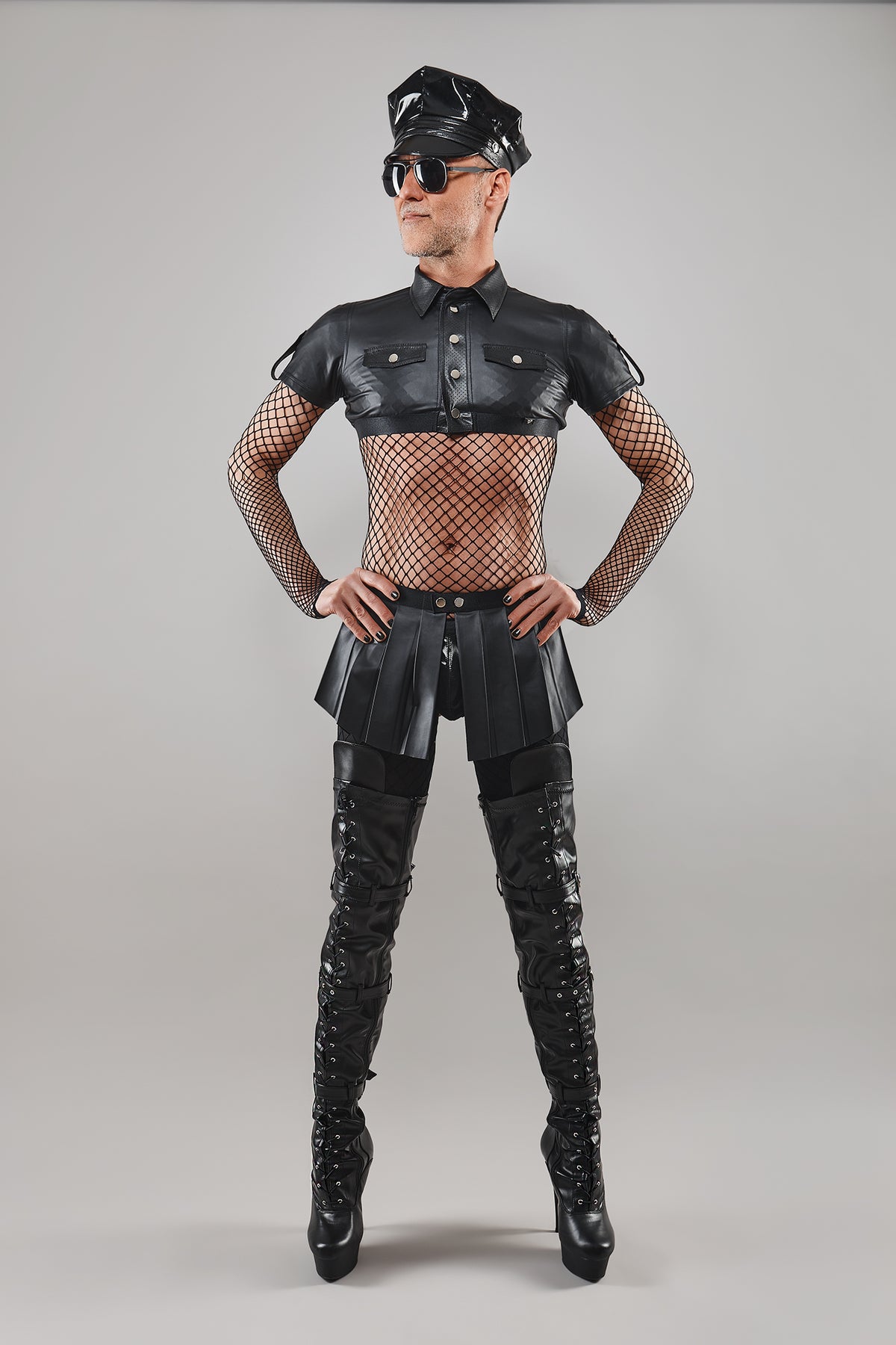 Der Minirock aus Wetlook-Plissee mit Druckknöpfen von Regnes Fetish Planet ist ein Statement-Piece für alle, die Erotik mit Stil und Selbstbewusstsein leben.