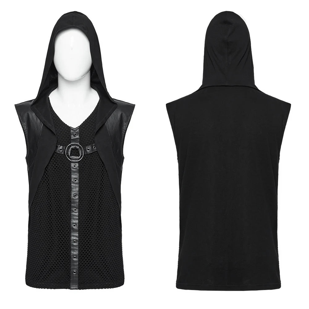 Punk Rave Kapuzenweste für Herren – ärmelloses Gothic Top mit O-Ringen