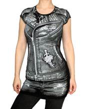 • Design: Damen Top mit Allover Biker Kutten Print
