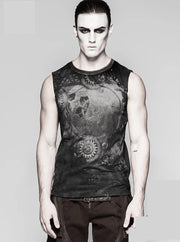 Punk Rave Steampunk Tank Top Herren – Ärmelloses Gothic Shirt mit Zahnrad-Print