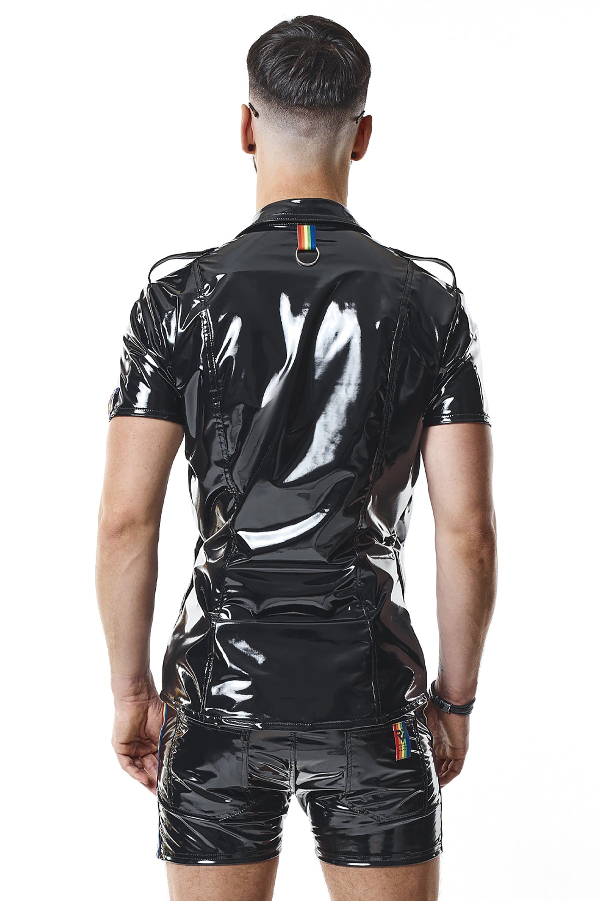 Regnes Fetish Planet – RMLuigiRBW Military PVC Shirt in Rainbow Fetish Style