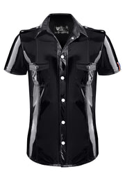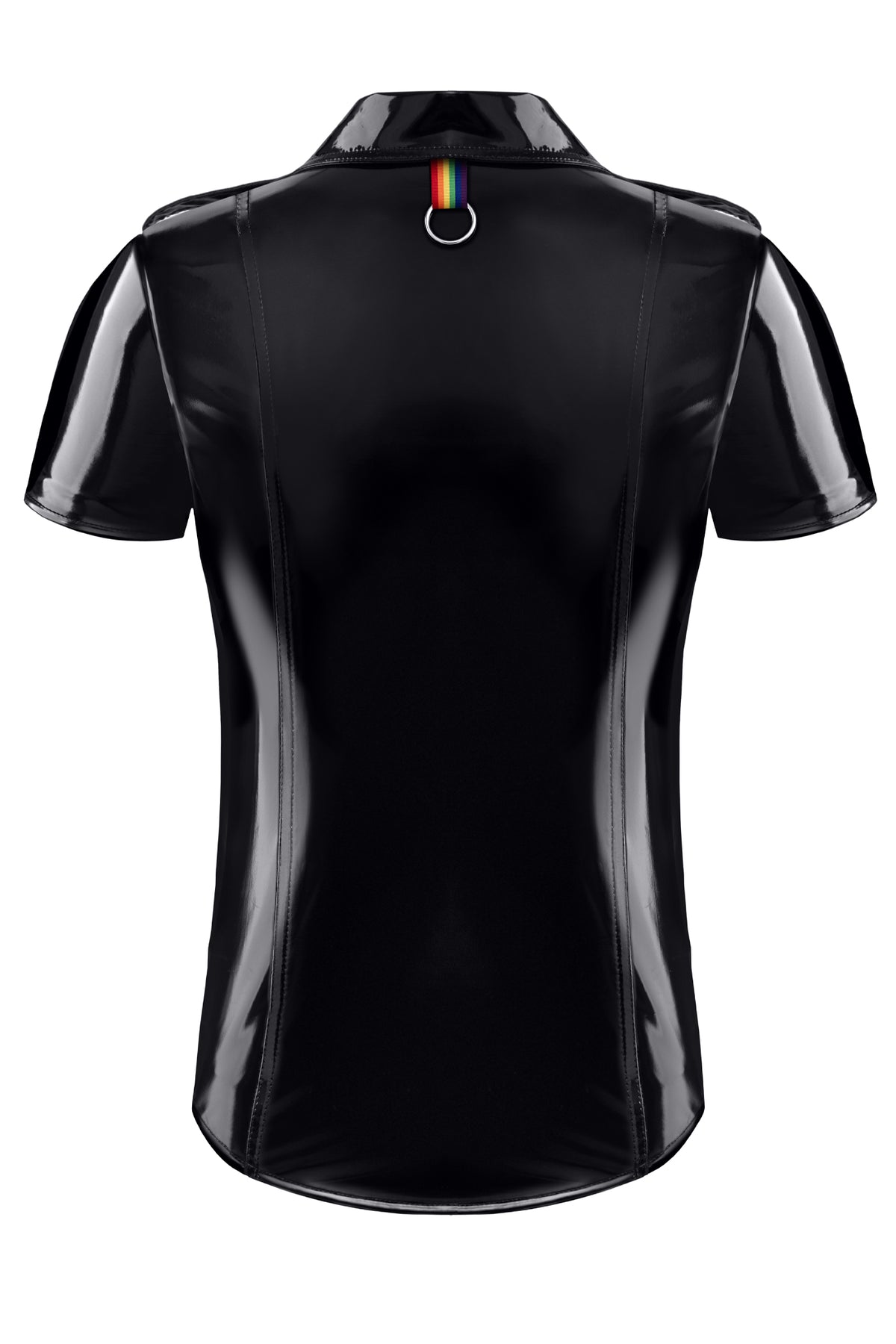 The RMLuigiRBW shirt from Regnes Fetish Planet combines classic military style with modern fetish elements to create a stunning statement piece. Made from high-quality, highly glossy, and elastic PVC, the shirt clings tightly to your torso, accentuating your chest and waist with its striking slim-fit cut.