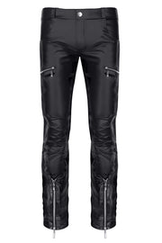 Spectacularly stylish and modern low-rise trousers. They feature perfectly crafted details and solutions. Two decorative zippers in dark metallic tones adorn the right thigh. Two more decorative zippers are located on the front of the lower legs. Front and back pockets provide convenient storage for your phone, wallet, and other small items. The trousers also have belt loops. A distinctive red Alcantara label with the RFP logo and red dot stitching will delight anyone who appreciates refined and unique details. The item comes packaged in a box with a picture. Care instructions: Hand wash at 30°C. Color: Black. Material: 95% Polyester / 5% Elastane. Available sizes: XS - 2XL