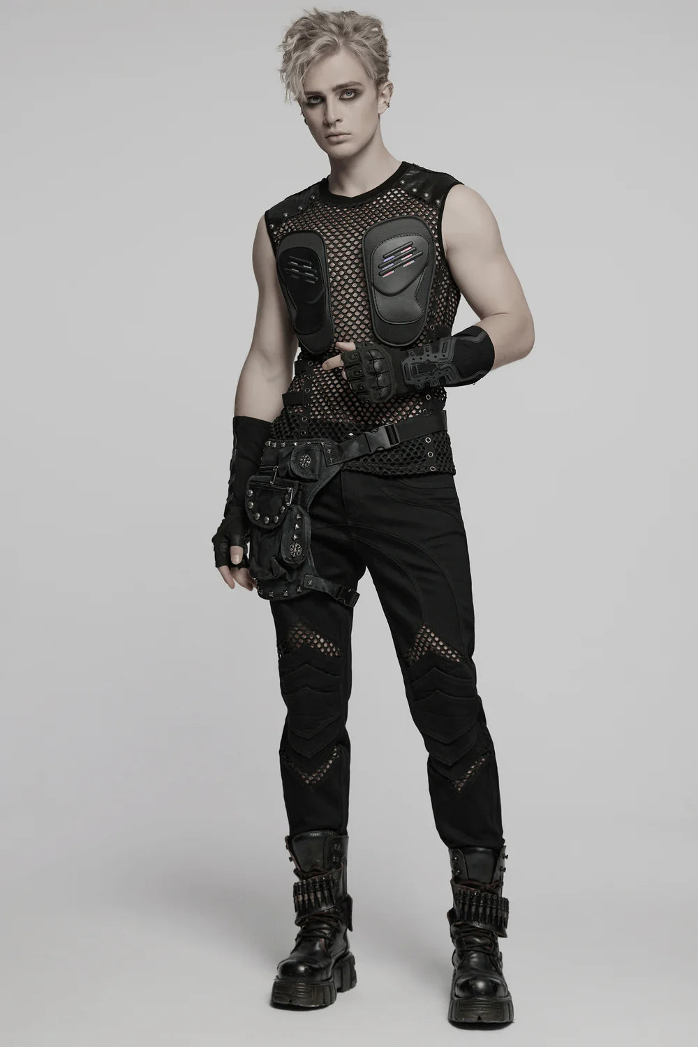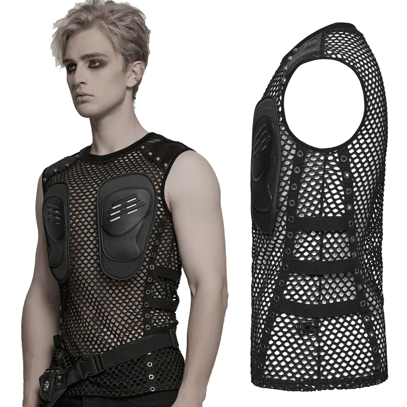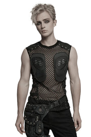 Sleeveless cyberpunk mesh top with 3D chest protectors
