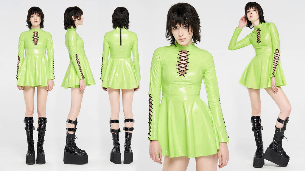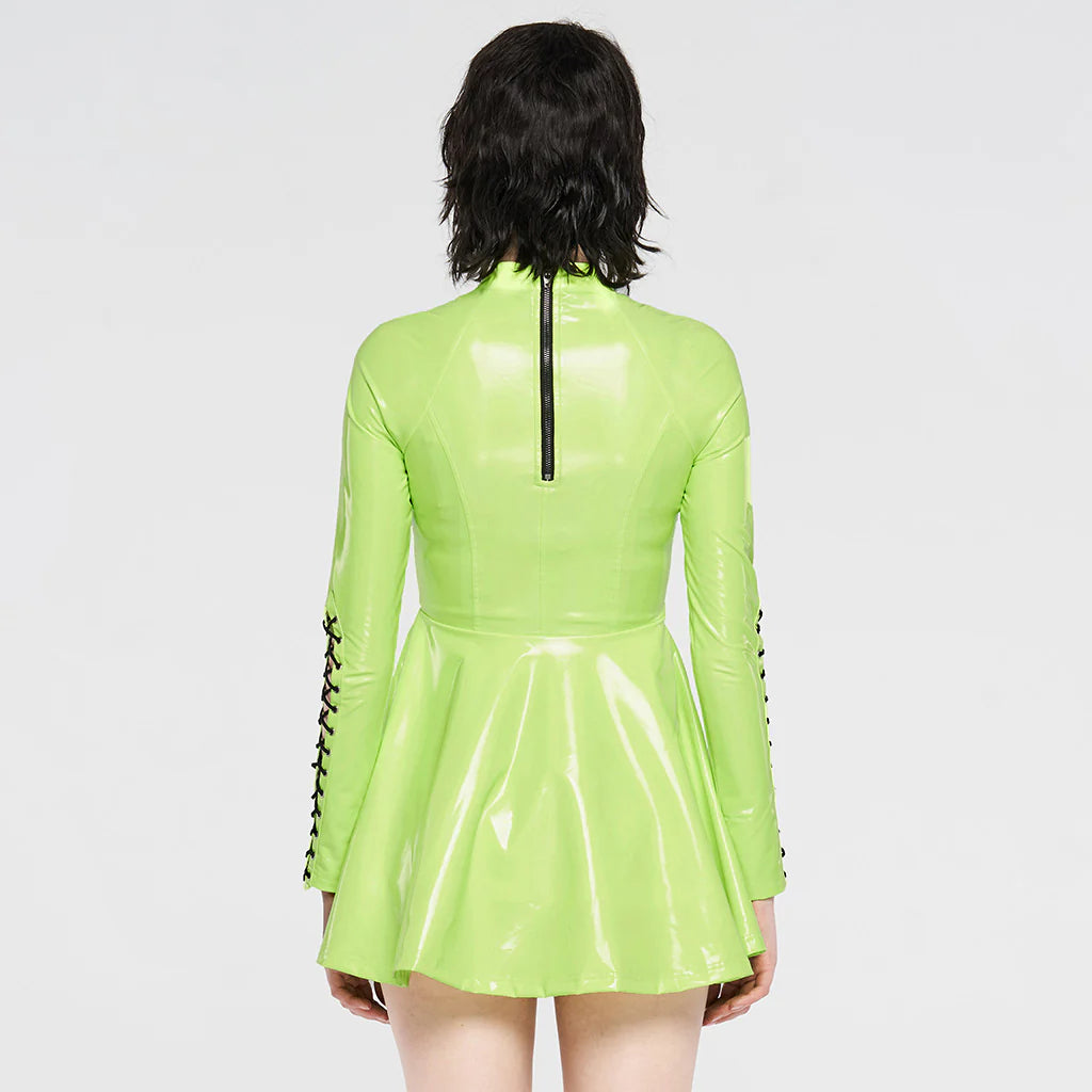 Punk Rave – Lolipop Neon-Grünes Lack-Kleid im Cyberpunk-Stil