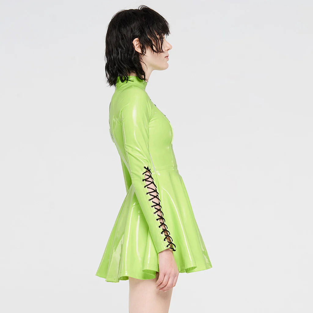 Punk Rave Lolipop Kleid Neon-Grün – Cyberpunk Lack-Minikleid