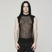 Punk Rave – Débardeur homme en résille et denim clouté