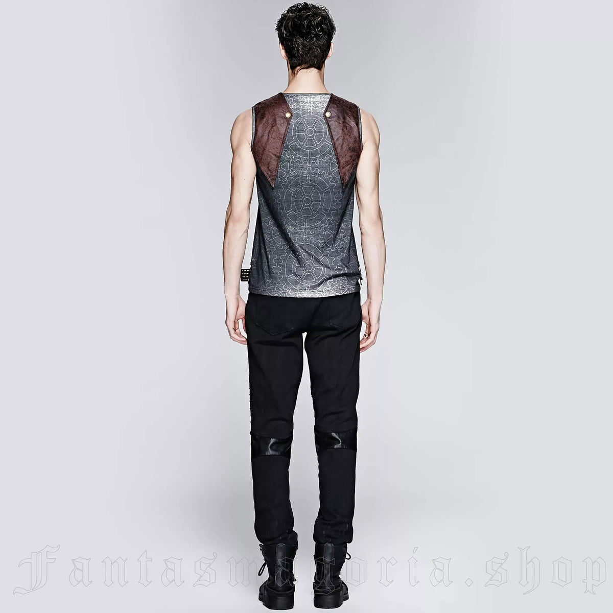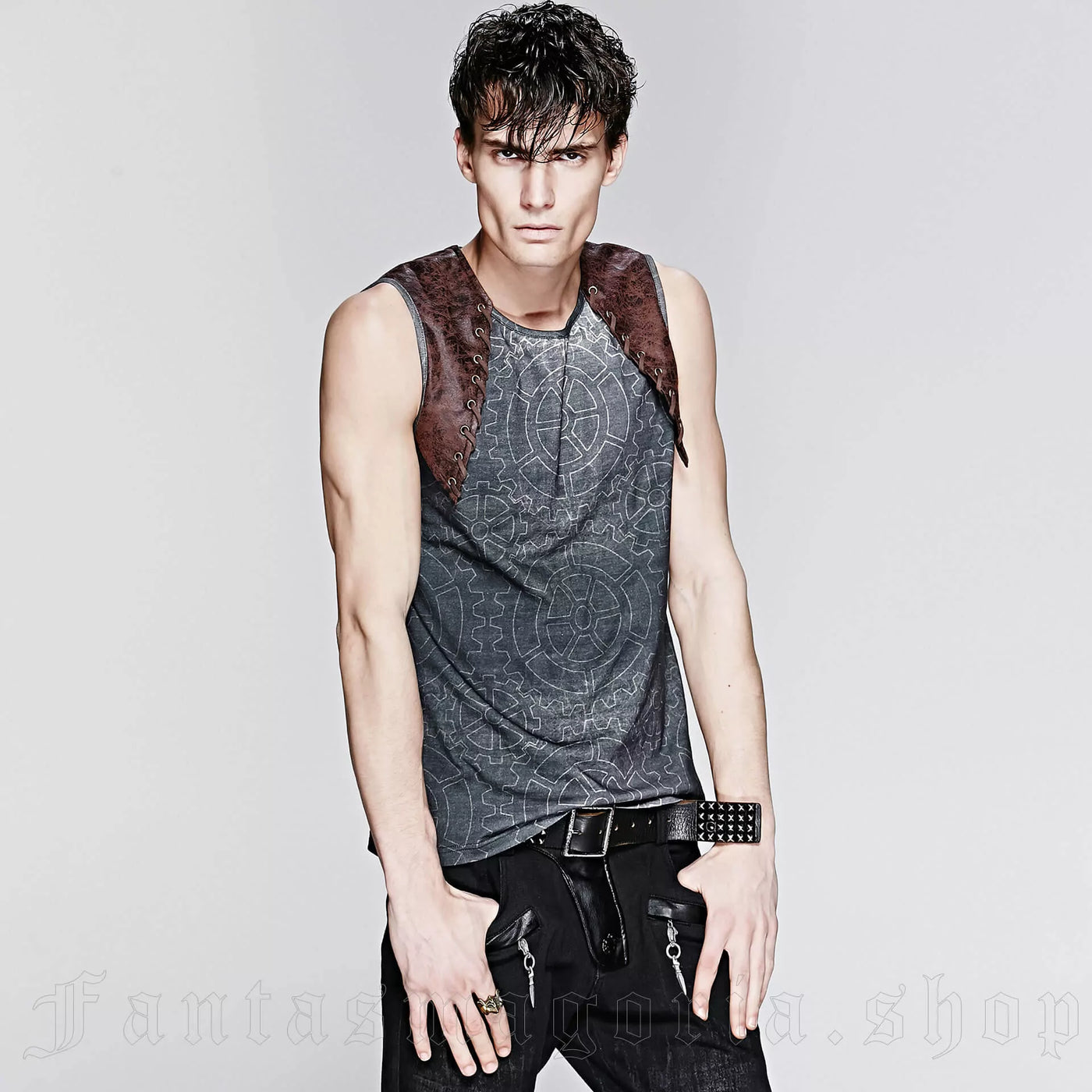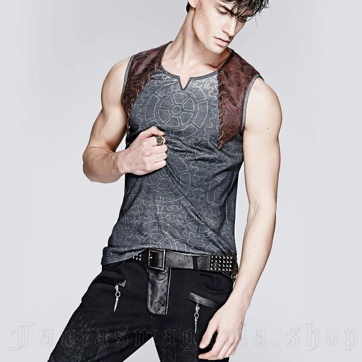 Punk Rave – Steampunk Sleeveless Top „Obsidian Mechanica“ mit Zahnrad-Print - M