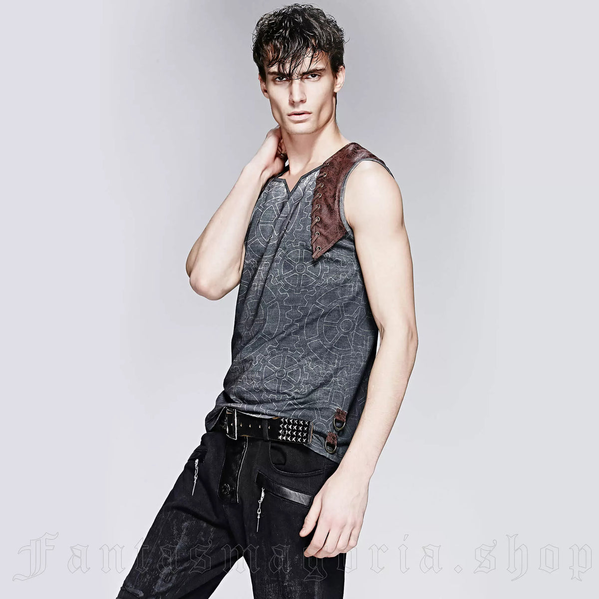 Punk Rave – Steampunk Sleeveless Top „Obsidian Mechanica“ mit Zahnrad-Print