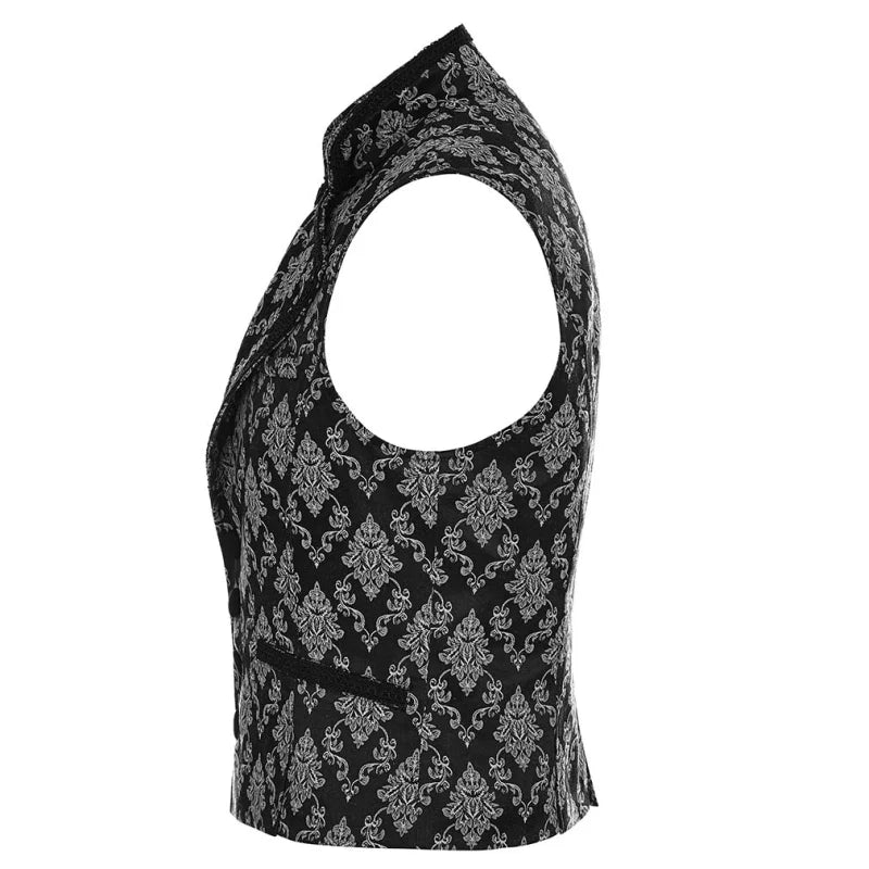 Punk Rave – Viktorianische Damast-Weste „Velarium Obscura“ in Schwarz-Weiß