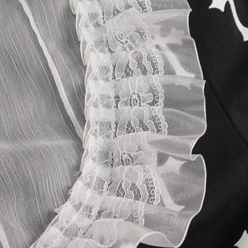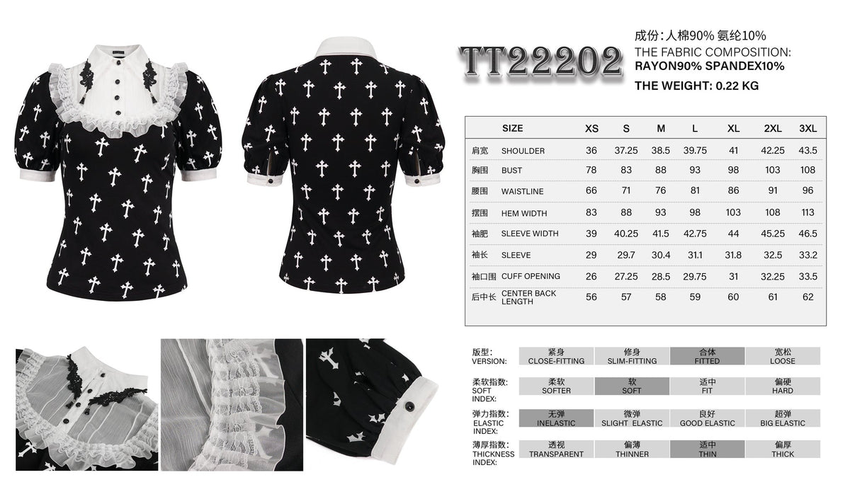 Gothic Blusentop Kreuz-Print Chiffon & Spitze Puffärmel Devil Fashion