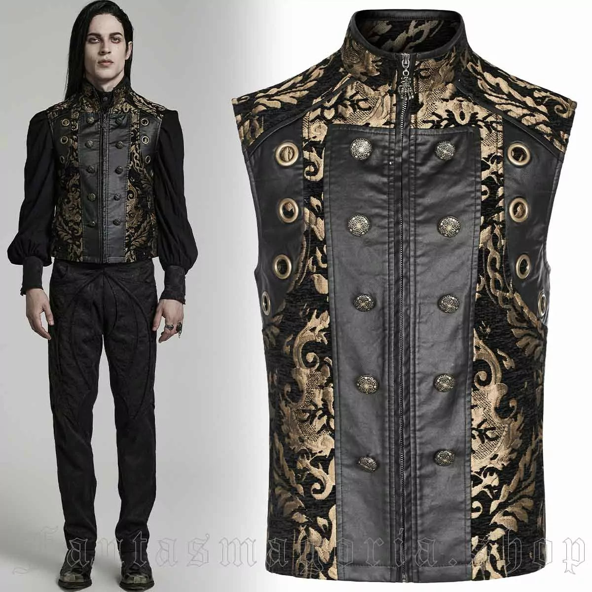 Punk Rave – Gothic Stehkragen-Weste „Noctis Imperium“ in Schwarz-Gold