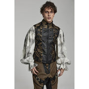 Punk Rave – Gothic Stehkragen-Weste „Noctis Imperium“ in Schwarz-Gold aus Jacquard