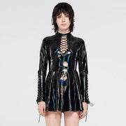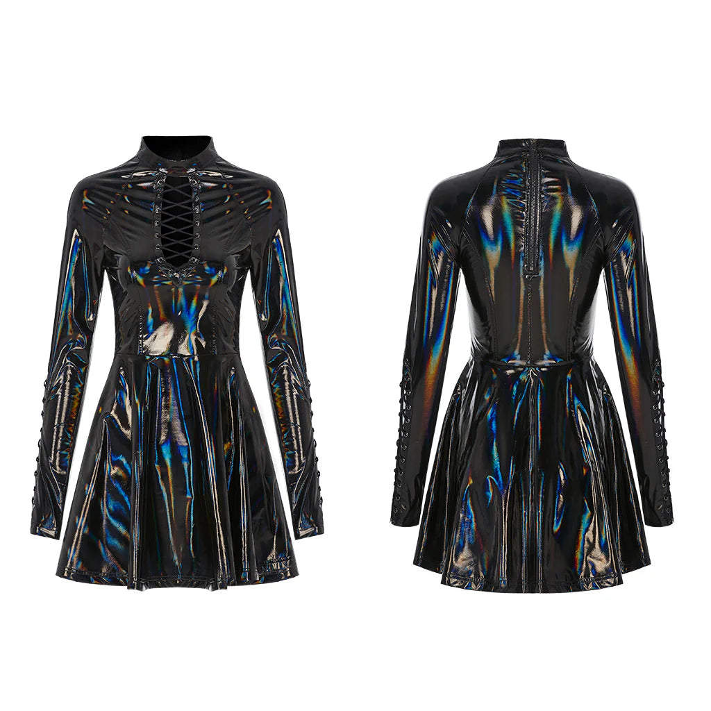 Punk Rave – Holografisches Gothic Minikleid „Electric Lollipop“ aus Lack